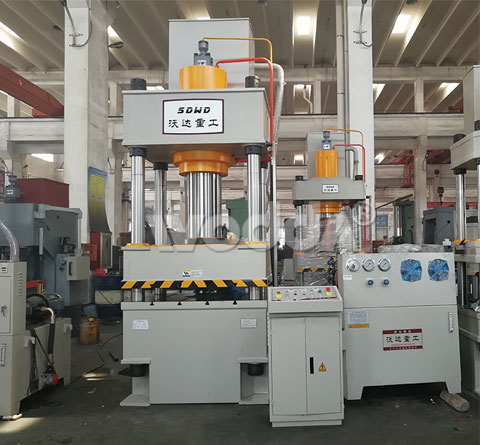 315噸三梁四柱液壓機作為山東沃達重工液壓機廠🌈家生産的一款熱銷産品,是一款多功能液壓機,也叫四柱拉伸液壓機,機身采用三梁四柱結構,經濟實用,液壓控制采用插裝閥集成系統,減少滲漏點,動作可靠,使用壽命長,可實現定壓和定程兩種成形工藝,具備保壓延時功能,工作壓💜力行程可在規✂️定的範圍内調節,采用按鈕集中控制,可實現手動、半自動、自動三種操作方式。