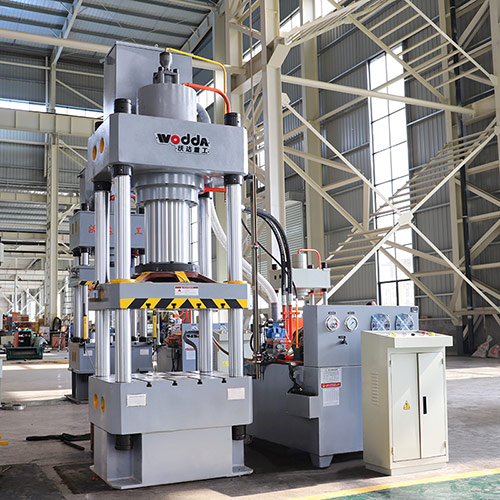 315噸四柱液壓機工作台面800x800mm,滑塊行程500mm,是公司自主研發生産設計的,設備由主機及控制機構兩大部分組成,通過管路及電氣裝置聯系起來構成整體。主機部分包括機身、主缸、頂出缸、限程裝置等。控制機構包括液壓泵站(動力系統)、電器箱等組成。