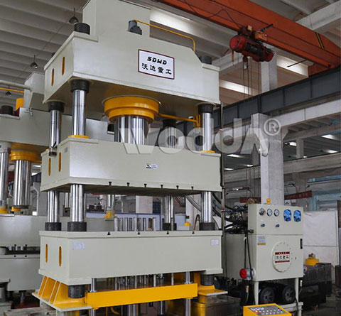 金屬拉伸液壓機是金屬制品拉伸成型專用的液壓機,設備由主機及控制機構兩大部分組成,通過管路及電氣裝置聯系起來構成整體。主機部分包括機身、主缸、限程裝置等。控制機構包括液壓泵站(動力系統)、電器箱、移動操縱台等組成。四柱式結構為壓力機很常見的結構形式之一,它的顯著特點是工作空間寬敞,便于四身觀察和接近模具,整機結構簡單,工藝性好,液壓機廠家山東沃達重工可以根據用戶需求進行定制生産,歡迎您來電咨詢。